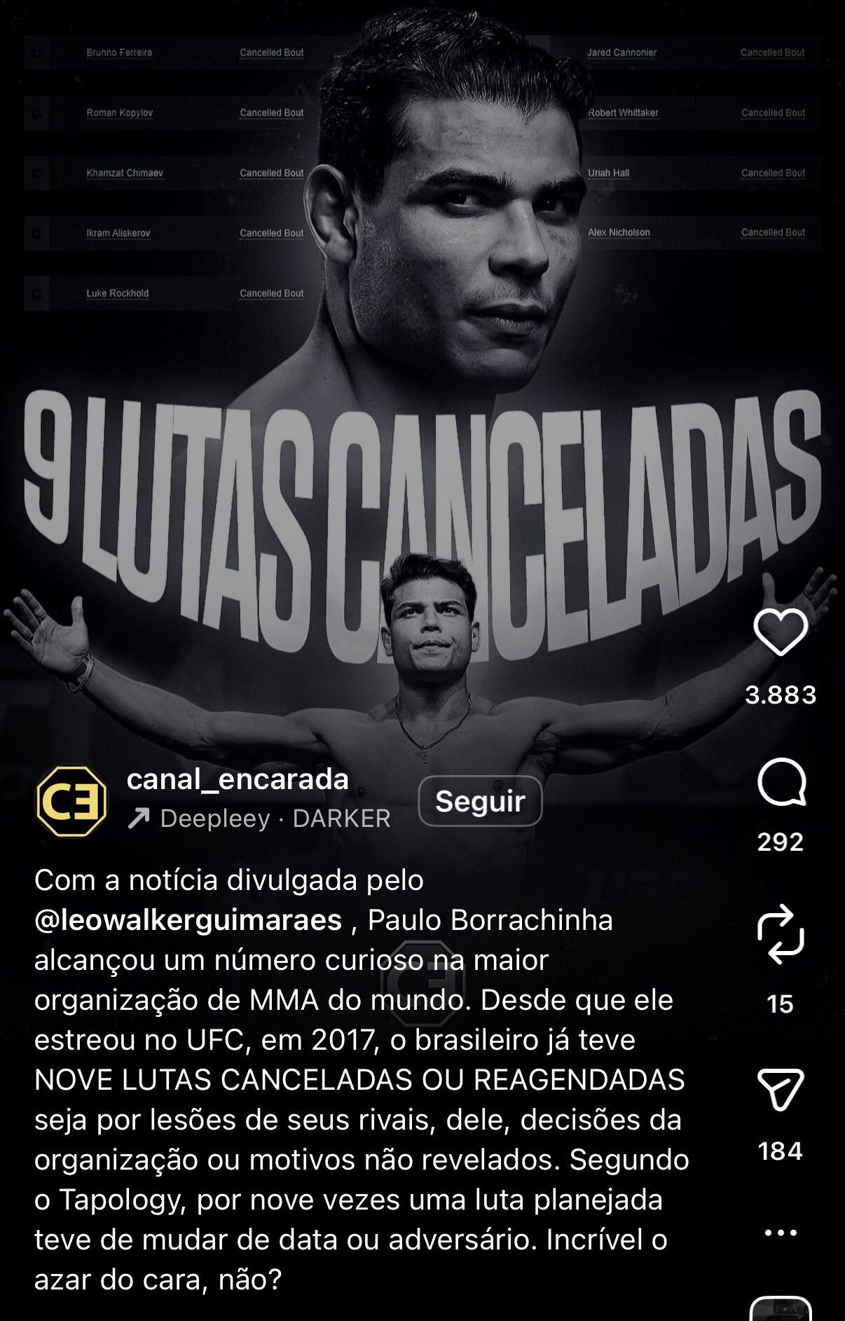 The Joker 0 Posted December 31, 2025 O que rola com o Borrachinha é que ele sabe que subiu por sorte no UFC. Não foi mérito. Ele fez lutas com lutadores medianos e o que o catapultou foi uma vitória polêmica contra o Romero. Ele não venceu aquela luta, mas o UFC deu a vitória pra ele. Com isso, ele foi escolhendo adversários, tentando o melhor para ele, porque ele sabia que um dia o caldo ia virar. Virou contra o Adesanya. Ali a máscara caiu. Daí, perdeu pra todo o mundo, mas com trash talk e comédia, conseguiu o Rockhold no meio do caminho e se segurou mais um pouco...Perdeu mais algumas e conseguiu espremer um resultado com um Kopylov irreconhecível. Até entendo a estratégia. Fez o melhor que pode sendo que nunca deveria ter estado lá. E ser lutador do UFC rende muitos frutos externos...Então ele vai se equilibrando como pode. Borrachinha é quase o Pimblett brasileiro. Só que o Pimblett conseguiu desenvolver, o Borrachinha não. Share this post Link to post Share on other sites